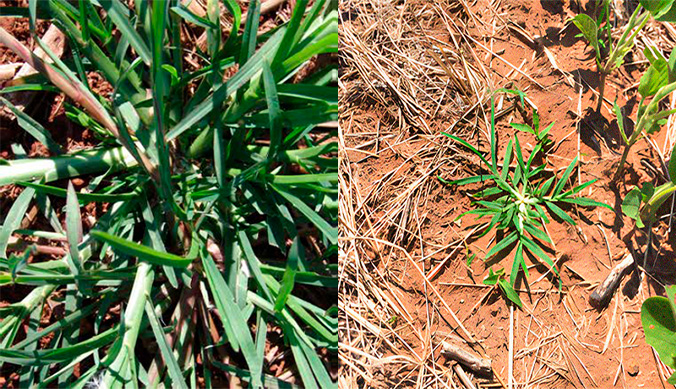 A resistência ao herbicida glifosato e inibidores da ACCase está entre os principais motivos pelo rápido crescimento da área infestada pelo capim-pé-de-galinha. Já a vassourinha-de-botão é uma planta caracterizada como tolerante ao glifosato, ou seja, esse herbicida nunca foi efetivo no controle dessa invasora, possibilitando a produção de semente e, consequentemente, a dispersão nas áreas agrícolas onde o glifosato foi, por muitos anos, a principal ferramenta herbicida para controle de plantas daninhas.